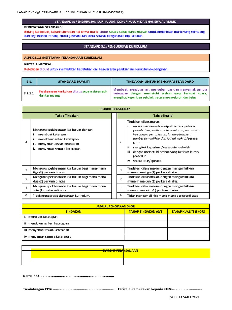Ketetapan pelaksanaan kurikulum dibuat secara sistematik. Bil Standard Kualiti Evidens Pelaksanaan 311 KETETAPAN PELAKSANAAN KURIKULUM 3111 Pelaksanaan kurikulum. 12042021 perkongsian contoh evidens pelaksanaan skpmg2 ini bukan hanya sebagai persediaan untuk pengisian skpmg2.